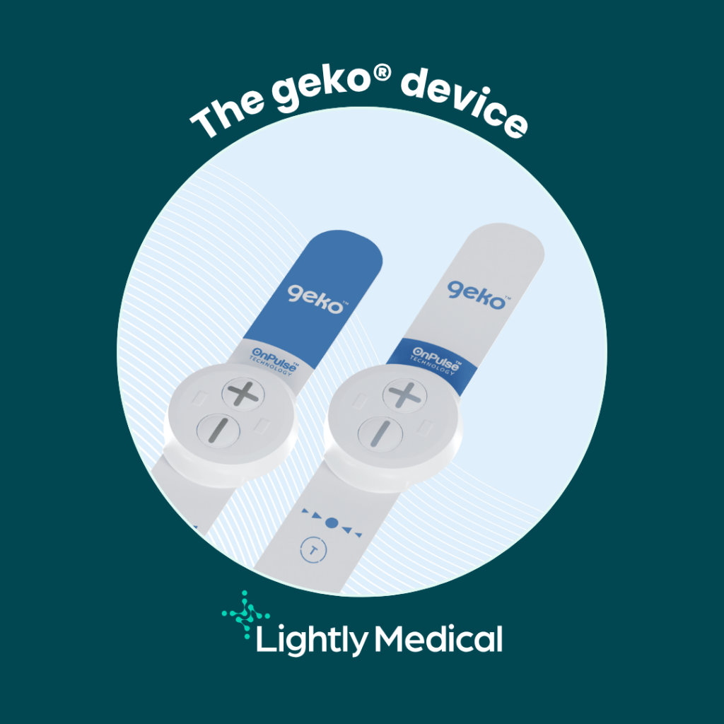 The device works by increasing blood circulation by stimulating the common peroneal nerve. The geko® device has been demonstrated through multi-centre randomised controlled trials (RCTs) to be effective in managing post-operative and trauma-based oedema.